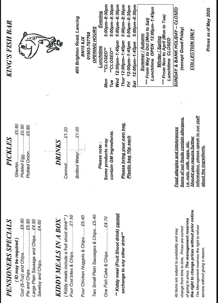 Located at 405 Brighton Rd, Lancing, BN15 8JX, King's Fishbar is easy to find. It sits near the coastline, making it a perfect stop after a walk on the beach. The ambiance is relaxed, encouraging diners to settle in and enjoy their meal. The restaurant boasts wheelchair-accessible seating, ensuring everyone's comfort.